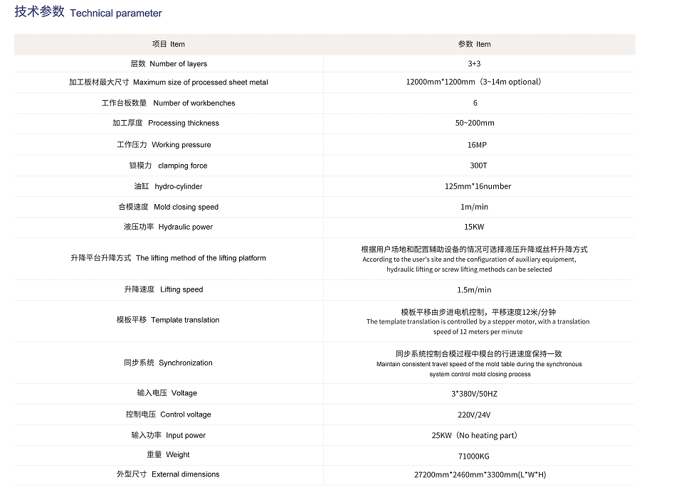 一是層壓機(jī),他分上下兩個(gè)保壓工作區(qū),每個(gè)工作區(qū)放置三塊工作模板。當(dāng)上部工作區(qū)保壓工作時(shí),下部工作區(qū)打開,打開的工作區(qū)可以由機(jī)械手放置或取出模板。上下工作區(qū)交替使用。