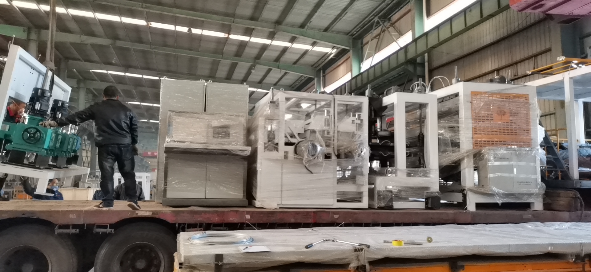 12月12日下午,河北邯鄲客戶訂購的一條85/250二氧化碳發(fā)泡擠塑板生產(chǎn)線在公司生產(chǎn)制造車間內(nèi)檢驗合格裝車發(fā)貨。
